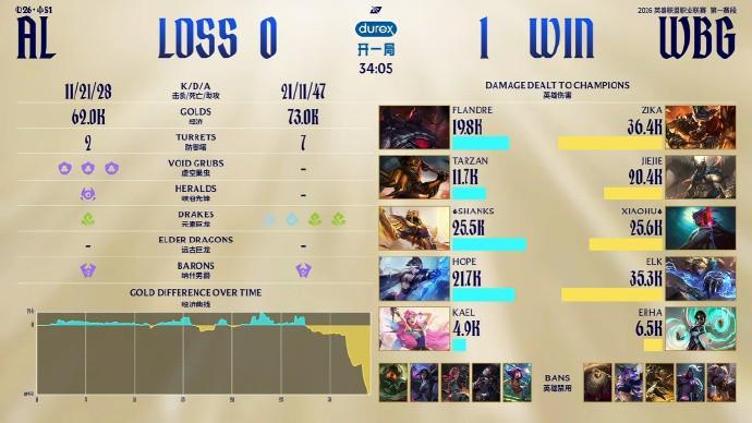本局前期人头爆发不少,但没有一边确立绝对的优势,但WBG控下了更多的小龙。AL选择之前Rush大龙破局但Jiejie闪现接惩戒抢下大龙,Xiaohu永恩大招命中多人AL团战瞬间爆炸,在一波未果后WBG选择拿下龙魂后再次推进结束比赛!